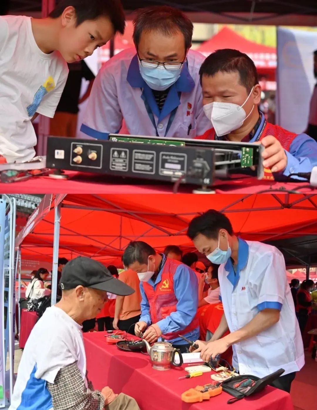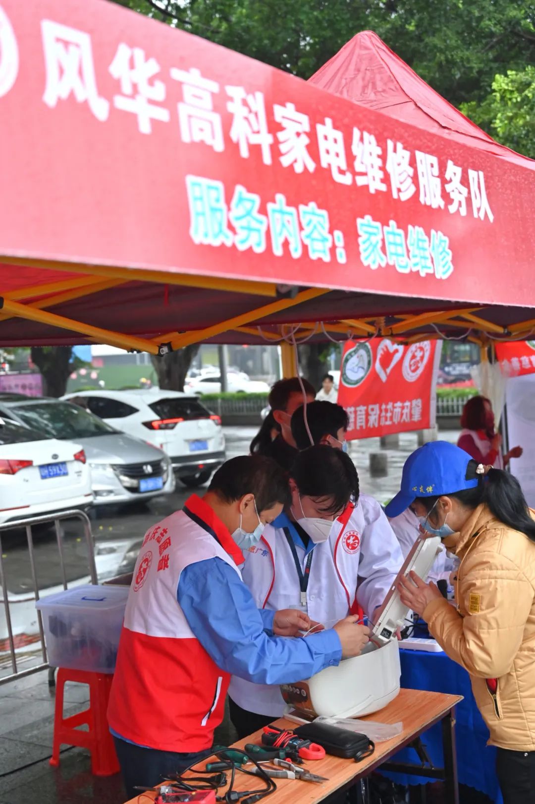 陽春三月的便民服務一條街,風華高科維修服務隊正在專心致志地看著手中的小家電,仔細查找排除故障,向居民講解平時使用和保養(yǎng)的方法,電飯鍋、燒水壺、收音機等一件件小家電得以修復,再次派上用場。