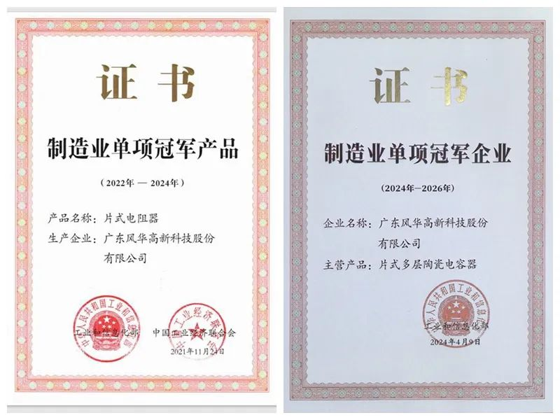 ▲風華高科獲評國家級制造業單項冠軍企業和產品