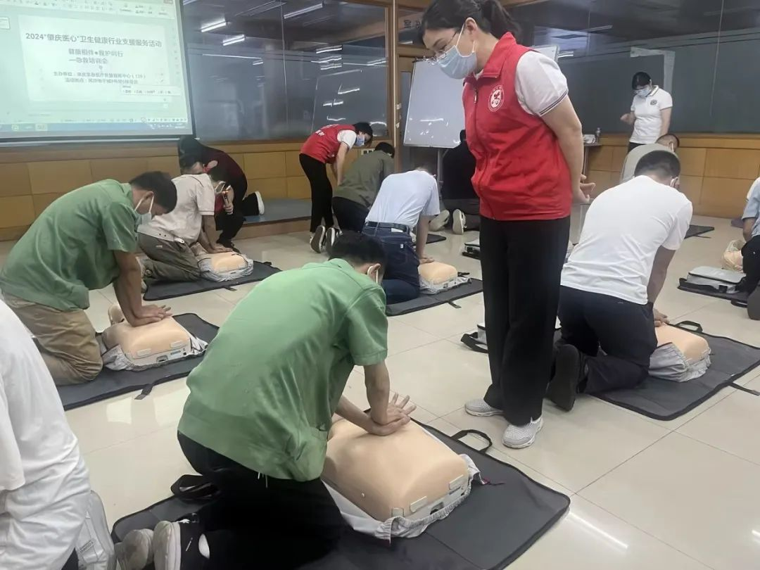 培訓現場,員工們學習熱情高漲,全神貫注傾聽講解,爭先恐后參與實操。在心肺復蘇模擬環節,大家輪流上陣,相互糾錯指正動作,確保每一個步驟都準確到位。志愿者在旁耐心指導講解,現場氣氛既緊張又活躍。