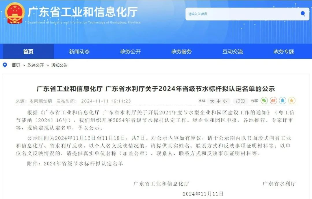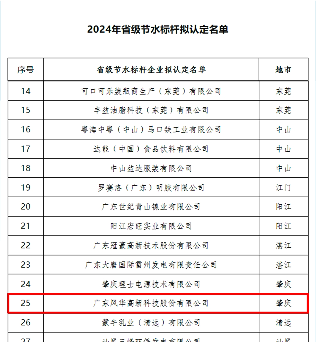 近日,廣東省工業和信息化廳公示的《2024 年省級節水標桿擬認定名單》引發廣泛關注,全省共29家企業入選,風華高科憑借卓越的節水實踐成為今年肇慶市僅有入選的兩家企業之一、端州區唯一一家入選企業,為端州區在省級節水標桿企業方面實現了從零到一的突破。