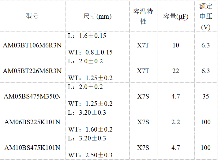 作為應(yīng)用最廣泛的被動(dòng)元件,MLCC被大量應(yīng)用于新能源汽車自動(dòng)駕駛系統(tǒng)、動(dòng)力系統(tǒng)、車身系統(tǒng)、底盤系統(tǒng)、車載娛樂(lè)系統(tǒng)等方面。目前同時(shí)具備高容量、高溫可靠性、高額定電壓的車規(guī)MLCC產(chǎn)品在國(guó)內(nèi)尚屬空白。風(fēng)華高科基于自主開(kāi)發(fā)的高容高壓材料體系,實(shí)現(xiàn)了以AM05BS475M350N(0805 4.7μF 35V X7S)為代表的車規(guī)級(jí)高容高電壓系列產(chǎn)品的驚艷亮相,填補(bǔ)了國(guó)內(nèi)空白!AM05BS475M350N產(chǎn)品封裝尺寸為英制0805,容量為4.7μF,額定電壓為35V,是目前該尺寸和容量產(chǎn)品的行業(yè)次高電壓水平。