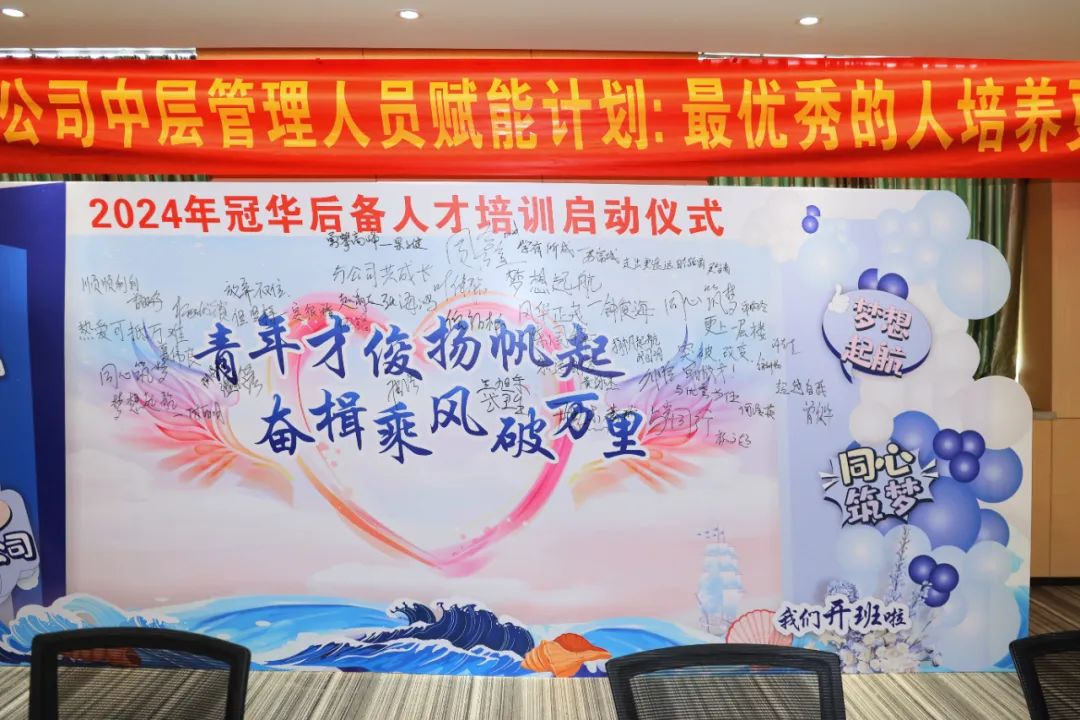 “風(fēng)華正茂,我們年輕,風(fēng)華正茂事業(yè)恢弘”……啟動(dòng)會(huì)在蕩氣回腸的《風(fēng)華正茂》中拉開序幕。學(xué)員們紛紛在背景墻上簽名打卡拍照,寫下“同心筑夢、夢想起航”“與公司共成長”等激情洋溢的文字,以筆墨傳遞著美好的愿望與祝福。