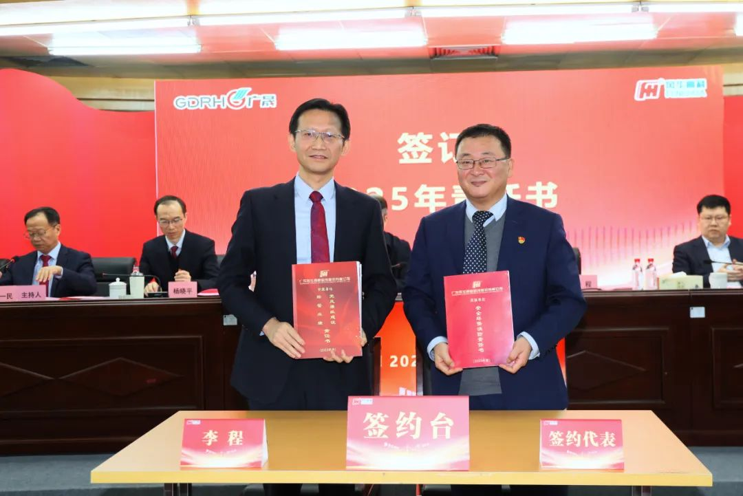 會上,李程與4家單位代表簽署2025年黨風廉政建設、生產經營、安全生產和消防安全責任書,各單位立下全年目標任務“軍令狀”。
