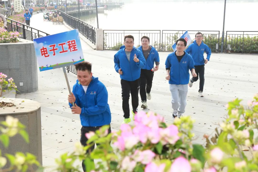 用腳步丈量奮斗,用汗水澆灌熱情。一支綿延的員工隊(duì)伍,浩浩蕩蕩地穿梭在牌坊公園綠道中,紅藍(lán)相間的衣服色彩與綠樹繁花相映成趣,為公園增添一道靚麗風(fēng)景。大家步伐堅(jiān)定,充滿干勁地跑向5公里外的七星巖東門廣場,用奔跑的姿態(tài),用汗水與活力,一起奔向明媚的春天。
