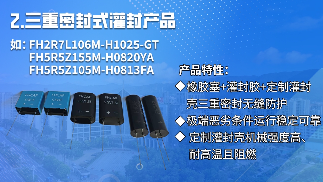 多年來,風華高科積極構建完善且豐富的超級電容器體系,成功推出了涵蓋多種類型的超級電容器產品,滿足了不同場景的多樣化需求。近期,風華高科推出了灌封系列和車用系列超級電容器以針對性解決極端環境和車用領域普通儲能器件的短板,滿足特定領域的迫切需求。