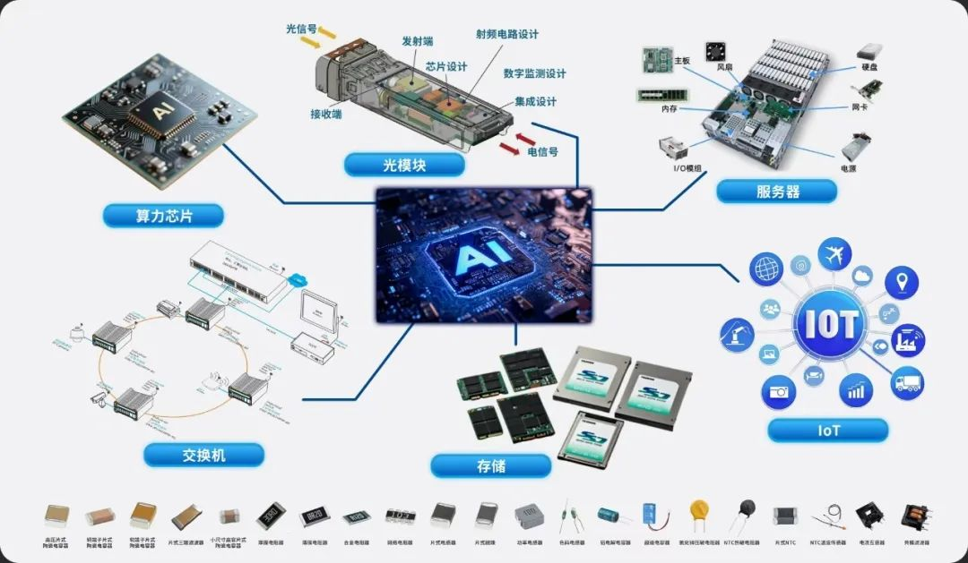 2.高性能片式電阻,滿足多領域高穩定需求。風華高科基于厚膜、合金、薄膜三大核心技術平臺,構建了業內最完整的電阻產品矩陣,可滿足現代電子設備對高穩定、高功率的嚴苛需求。其中,比較有代表性的有薄型產品,如MI0805(1mΩ)等,因其超小的體積和高性價比等優點,與風華高科其他微小型片式元件一起,為眾多小型智能終端設備提供了更輕薄、更低功耗的解決方案;整體合金電阻MG2512(0.5mΩ)、分流器MS5931(0.2mΩ)等,憑借其更低的阻值和更大的功率,進一步降低了電路的功耗,優化了電源轉換效率,尤其適用于提升如AI機器人等高端智能設備的續航能力,保障系統穩定性。高性能片式電阻已廣泛應用于智能終端、工業控制、醫療電子、低空經濟、AI算力等領域。