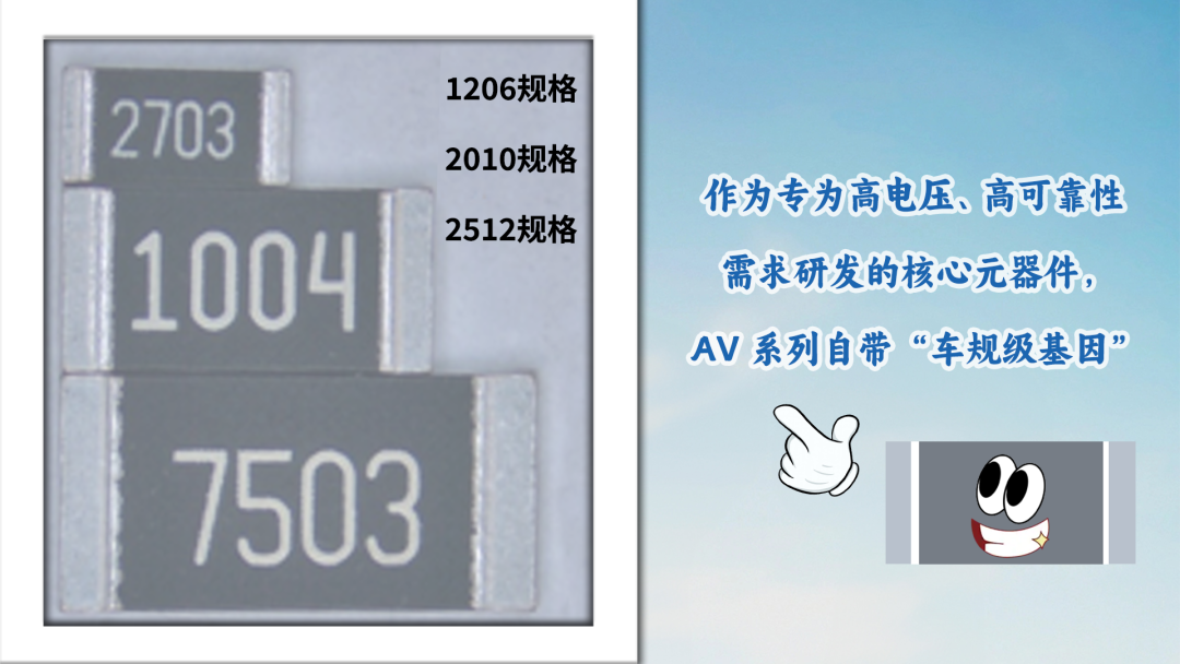 符合RoHS標準、無鹵素的環保設計,讓AV系列不僅“能打”更“綠色”。它打破了高壓采樣的技術瓶頸,更憑借車規級品質,成為新能源、工控領域的“首選電阻方案”——每一顆AV電阻,都是電子系統的“高壓安全防線”!