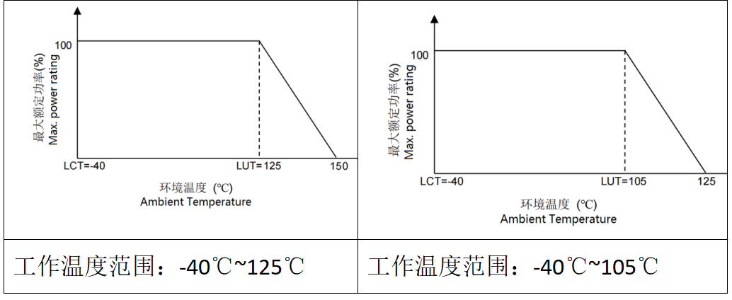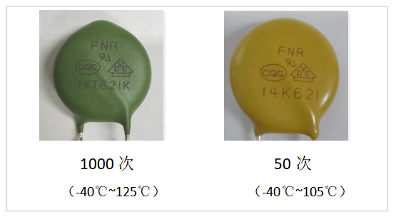 圖表2 車規壓敏電阻和常規壓敏電阻的工作溫度對比